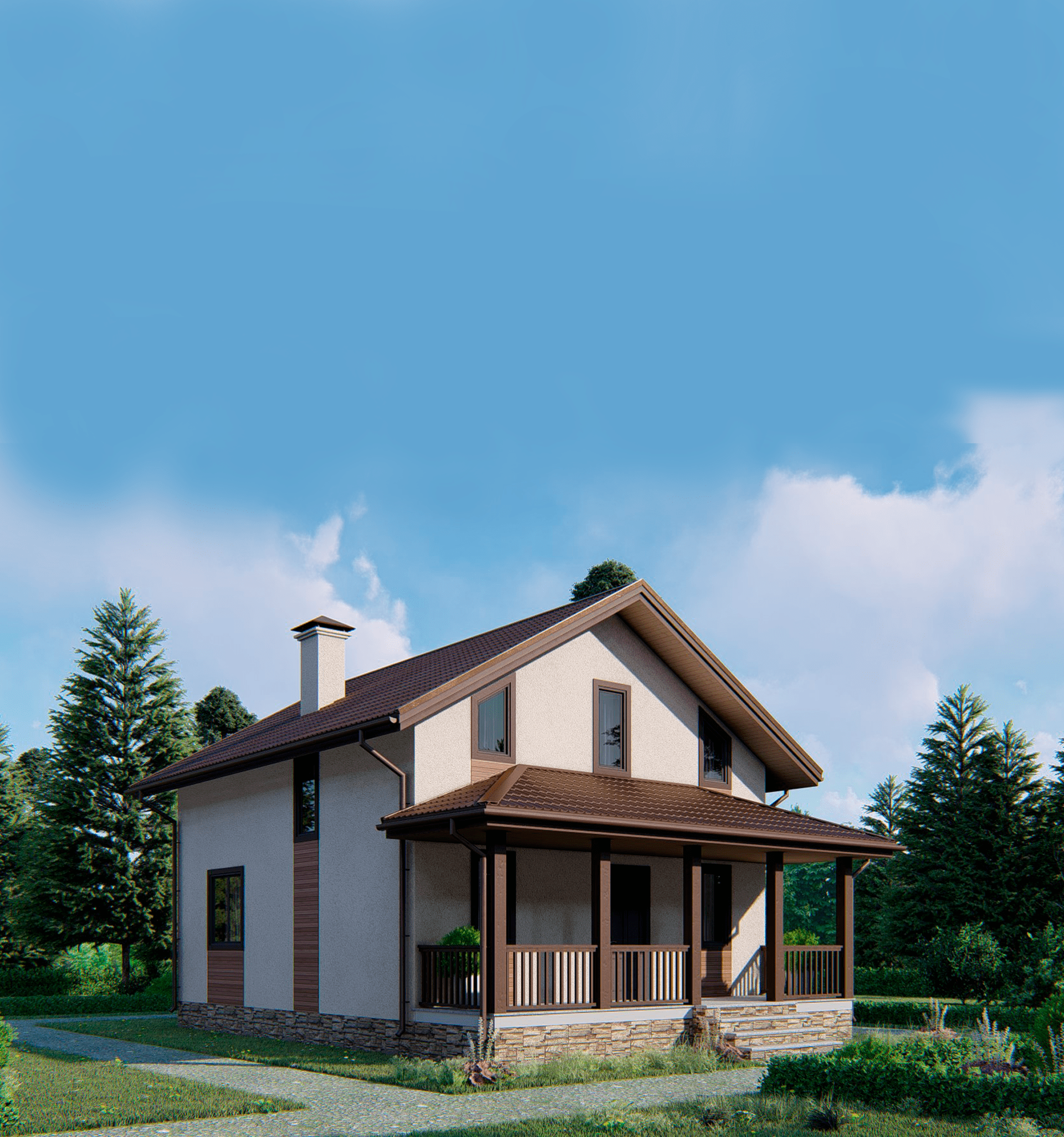 В доме 3 спальни, санузел, кухня-гостиная площадью 33 кв. м, подсобное помещение.